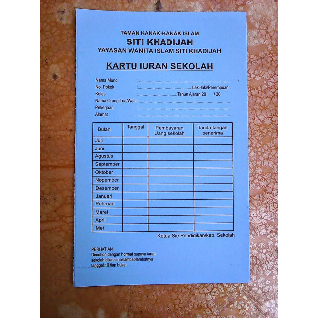 Tkit Tpq Baitul Aini Bentuk Format Kartu Iyuran Spp Uang Sekolah Tk Tpq Paud from 1.bp.blogspot.com Download banner santunan anak yatim format cdr 2019. Kartu iuran ini berisikan pencatatan pembayaran siswa yang harus di setorkan kepada sekolah dan juga kartu ini sebagai bukjti pembayaran siswa kepada sekolah dn kartu ini di bawa oleh siswa. Karena memang saat ini sudah banyak sekali software yang di kembangkan untuk mempermudah dan membantu pekerjaan kita. Savesave kartu iuran siswa for later. Raya mataram labuhan lombok km. Kartu iuran / bayaran siswa sekolah. Cidaun 43275kartu iuran siswanama siswa : 50 gapuk suralaga, lombok timur, tlp dan fax :