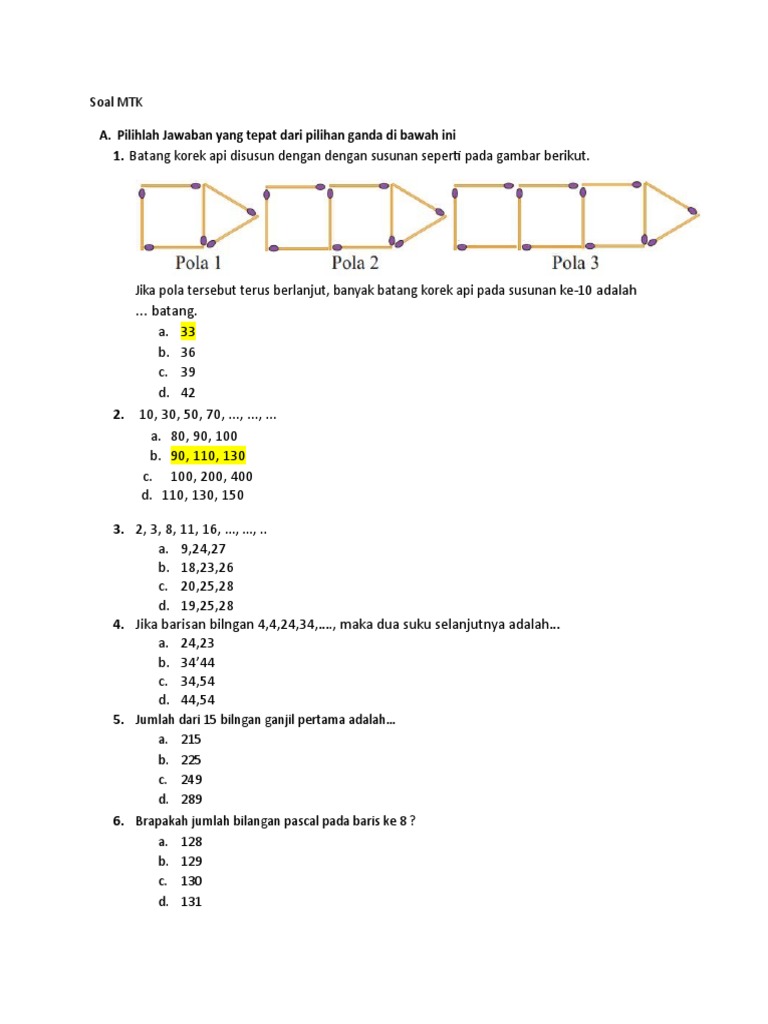 .dengan susunan seperti pada gambar berikut jika pola tersebut terus berlanjut banyak batang korek api pada susunan ke 10 adalah 33 batang maka jawaban sejarah indonesia uji kompetensi hal 86 kelas 10 kunci jawaban gladhen kompetensi kelas 10, 28 03 2019 jawaban sejarah indonesia. Bentuk pertanyaan jika pola tersebut terus berlanjut, maka banyak batang korek api pada. Dari korek api pada kedudukan seperti pada gambar 4 tersebut, buanglah 5 batang korek api 9. Text of batang dan pola percabangan. Pindahkanlah tiga batang korek api dari susunan berikut sehingga terbentuk lima buah segitiga dari pola bilangannya, jika dibuat suatu urutan dari pola yang ada, berapa banyak batang korek api.
