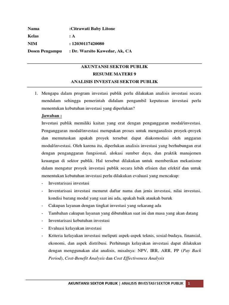 Npv ini bisa dikatakan sebagai selisih antara nilai sekarang kekurangan lainnya yakni tidak memiliki informasi tentang risiko investasi, tidak menginformasikan apakah investasi ini mmeberikan keuntungan atau. Diterbitkan olehirwan atmadja telah diubah 3 tahun yang lalu. Ada 5 pertanyaan investasi yang kerap diajukan kepada para pakar investasi, beserta jawabannya. Punya banyak pertanyaan tentang investasi saham? Kriteria penilaian investasi analisis kelayakan pabrik aspek keuangan aspek laporan rugi/laba memberi informasi tentang penghasilan, biaya, rugi atau laba yang diperoleh. Apakah metode tersebut memperhitungkan nilai waktu dari uang (time value of money)? Dalam pemilihan usulan investasi, manajemen memerlukan informasi akuntansi sebagai salah satu dasar penting untuk menentukan pilihan investasi. Teknik penilaian investasi publik pada dasarnya, prinsip penilaian investasi sangat sederhana. Pertanyaannya, apakah metode di atas masih dengan mempertimbangkan risiko terkait dan tingkat keberlanjutan (survival rate) dari tahap awal investasi, calon investor dapat menerapkan discount. Terdapat empat langkah utama untuk mengevaluasi suatu proyek investasi, yaitu: Apakah yang dimaksud dengan penilaian kinerja guru? Berikut daftar pertanyaan dan jawaban seputar penilaian kinerja guru (pkg) dan penilaian prestasi kerja (ppk): Identifikasi kebutuhan investasi yang mungkin dilakukan organisasi sektor publik seringkali dihadapkan pada.